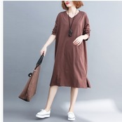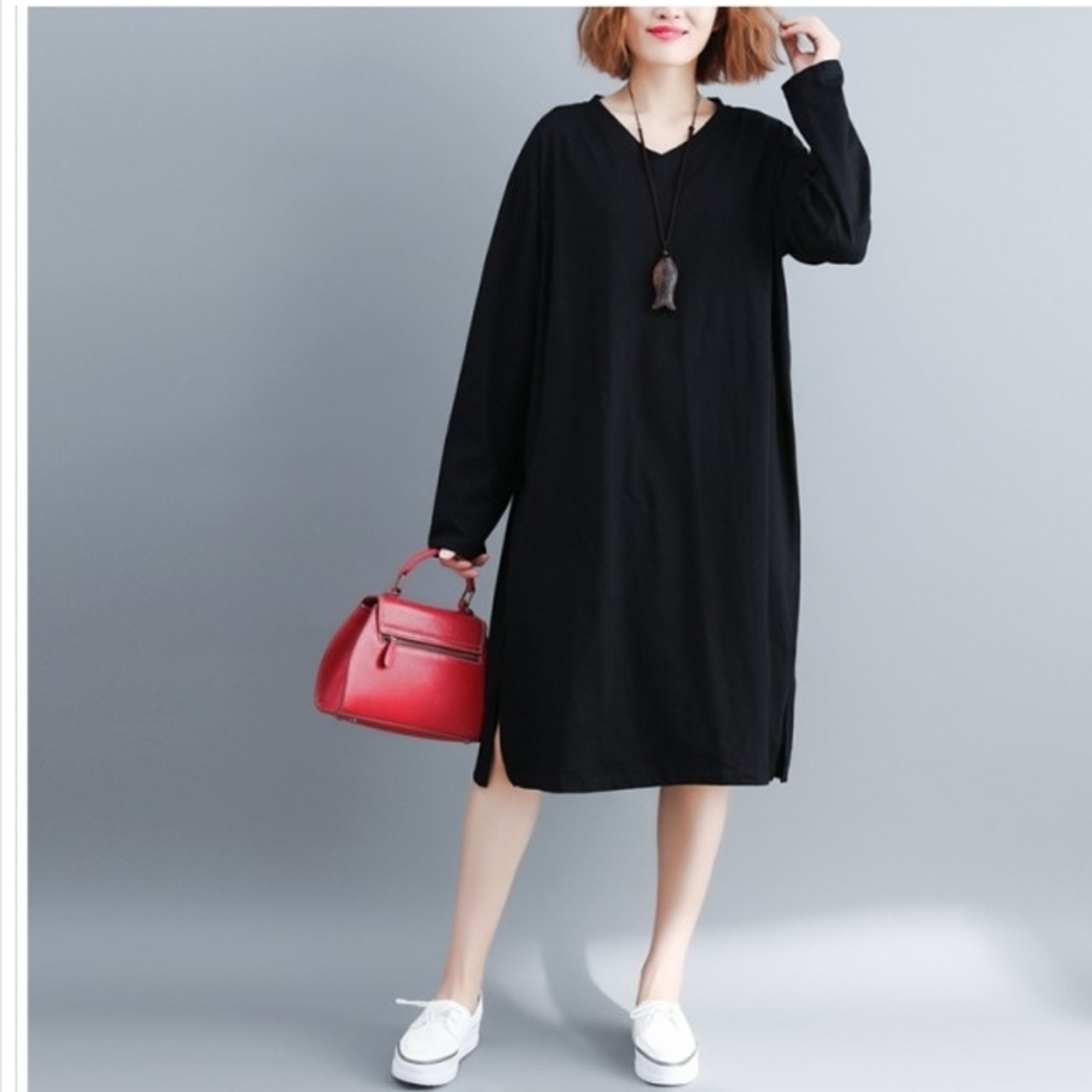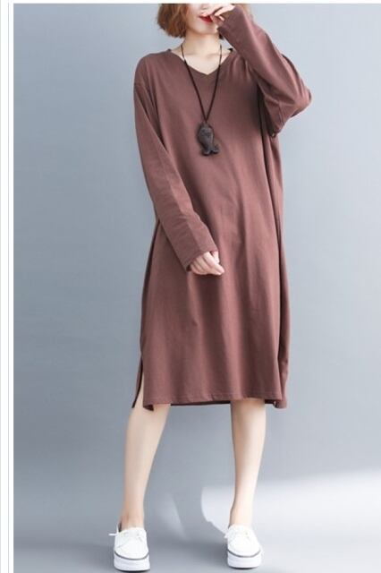 ゆる ワンピース 大きいサイズ レディース ワンピース コクーンワンピース ロング丈 長袖 クルーネック ポケット ダブルガーゼ シンプル