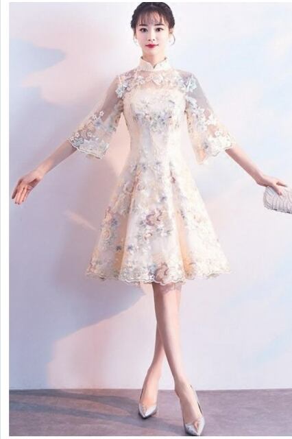 フレアマキシワンピース 春 夏 韓国 ドレス パーティードレス 結婚式 二次会 ワンピース 袖あり レース 花柄 ボートネック フレア ミモレ