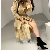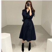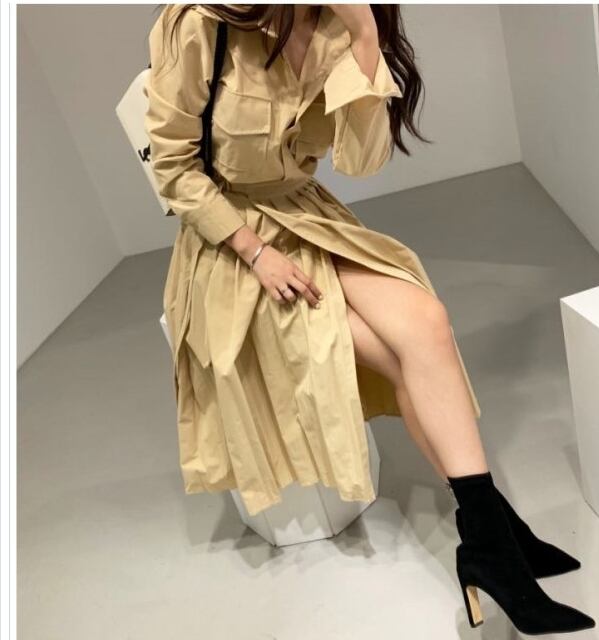 ゆる ワンピース ワンピース レディース 長袖ワンピース 無地 シャツワンピース ラップ風スカート プリーツ 大人カジュアル きれいめ