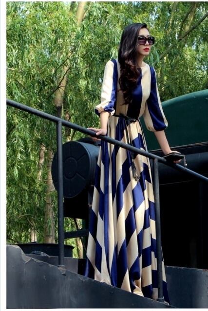 フレアマキシワンピース 春 夏 ワンピース レディース ロング フレア ストライプ 大人 綺麗 上品 カジュアル フォーマル マキシ丈 シンプ