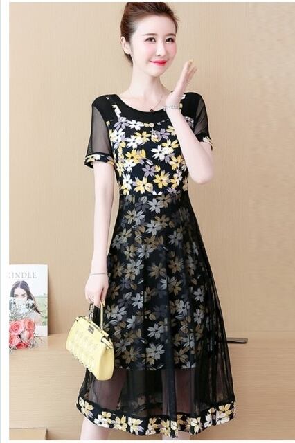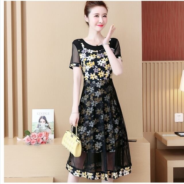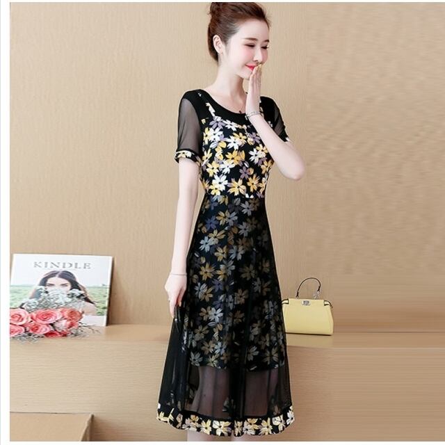 フレアマキシワンピース 春 夏 マキシ丈ワンピース 刺繍 花柄 ワンピース フレア シースルーワンピース パーティードレス Aラインワンピ