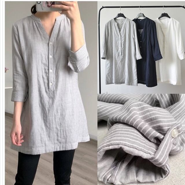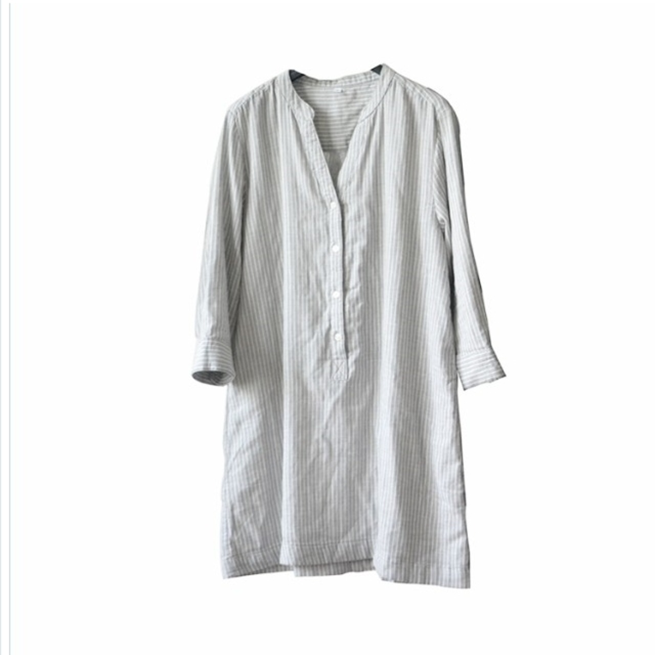 ゆる ワンピース 春新作 ドット&ストライプ ロングシャツワンピース ミミメメット トップス ワンピース ワンピ ロングワン