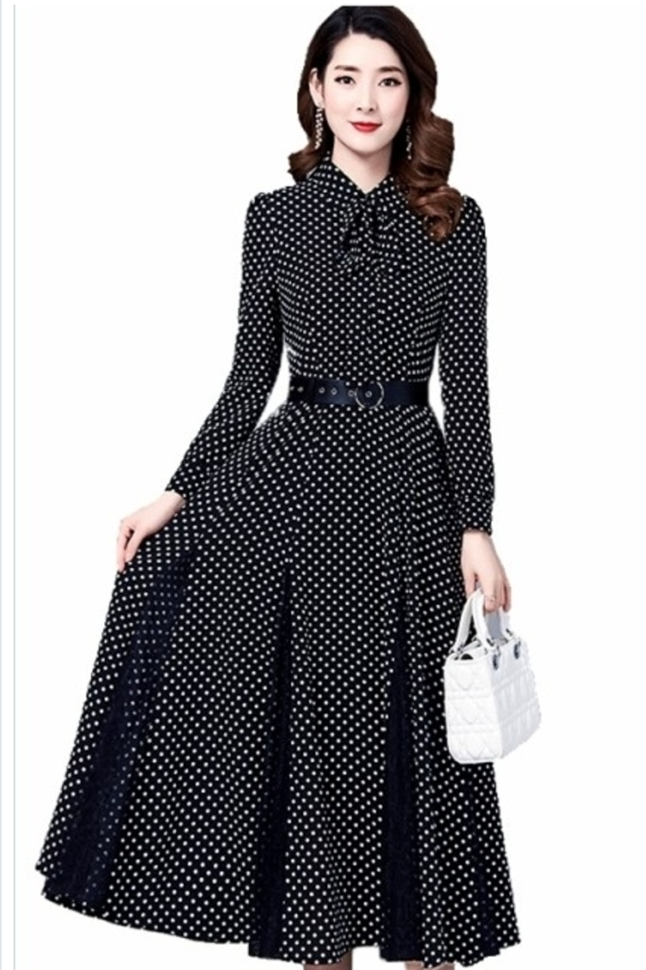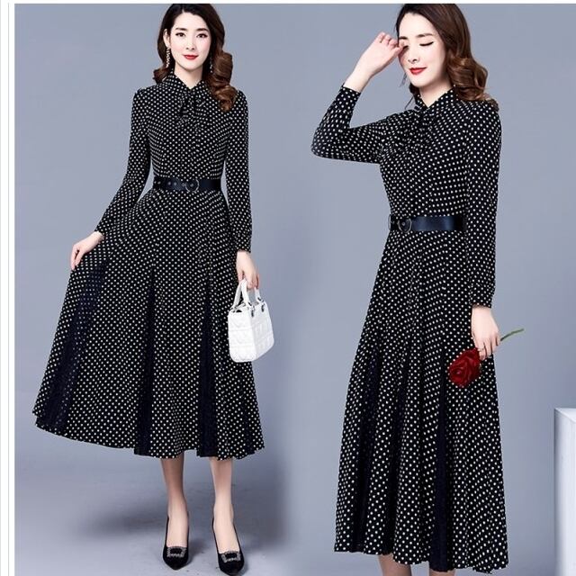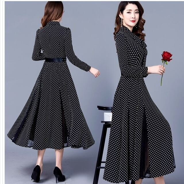 プリーツスカート ロング 花柄 パーティードレス 結婚式 二次会 お呼ばれ ワンピース 袖あり お呼ばれドレス ドレス 20代 30代 40代 ドッ