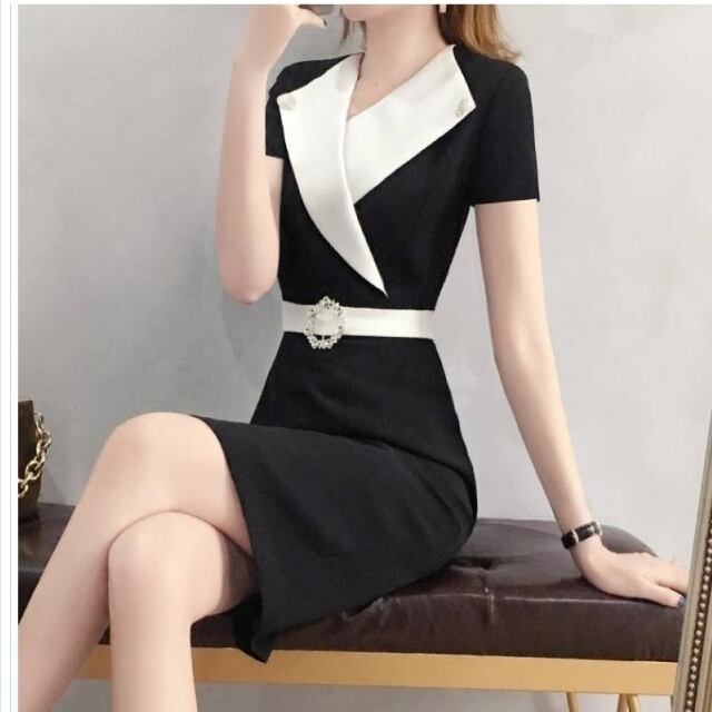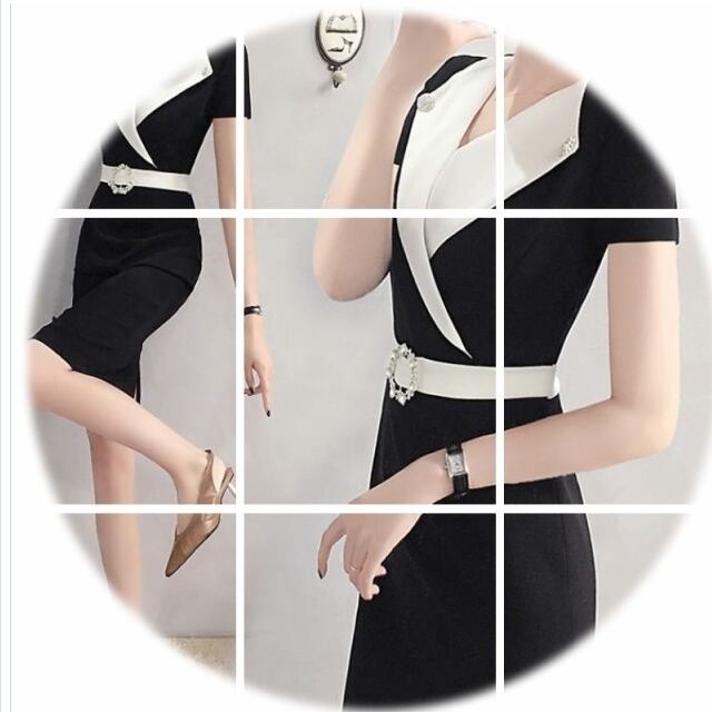 フェミニン ワンピース ワンピース レディース カシュクール ノーカラー 長袖 ひざ丈 ミモレ丈 ベルト バイカラー フェミニン ハイウエス