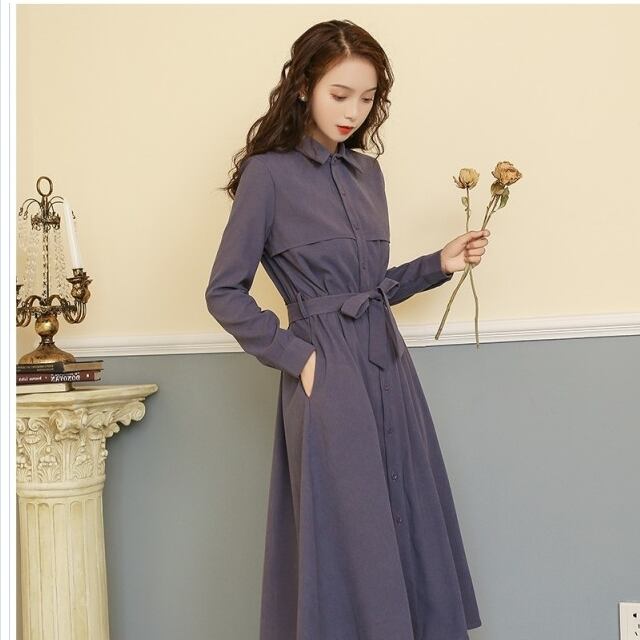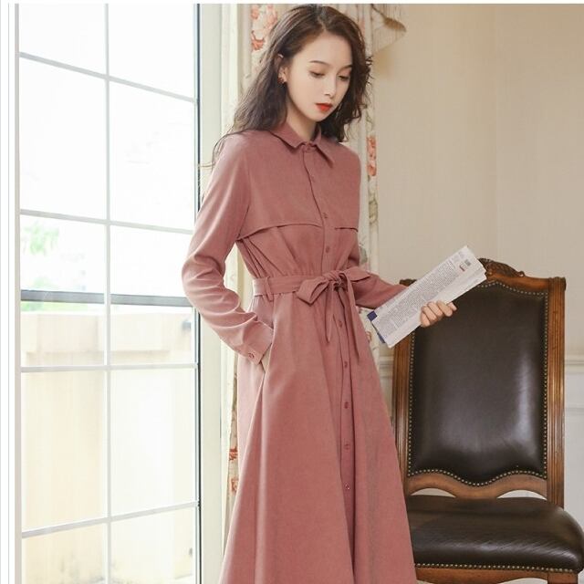フェミニン ワンピース 韓国 ファッション レディース ワンピース 長袖 Vネック ドッキング フレア ハイウエスト きれいめ 上品 大人可愛