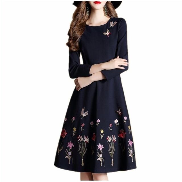 フレアマキシワンピース 春 夏 ワンピース ドレス 春 ブラック 刺繍 可愛い おしゃれ 大人 レディース 結婚式