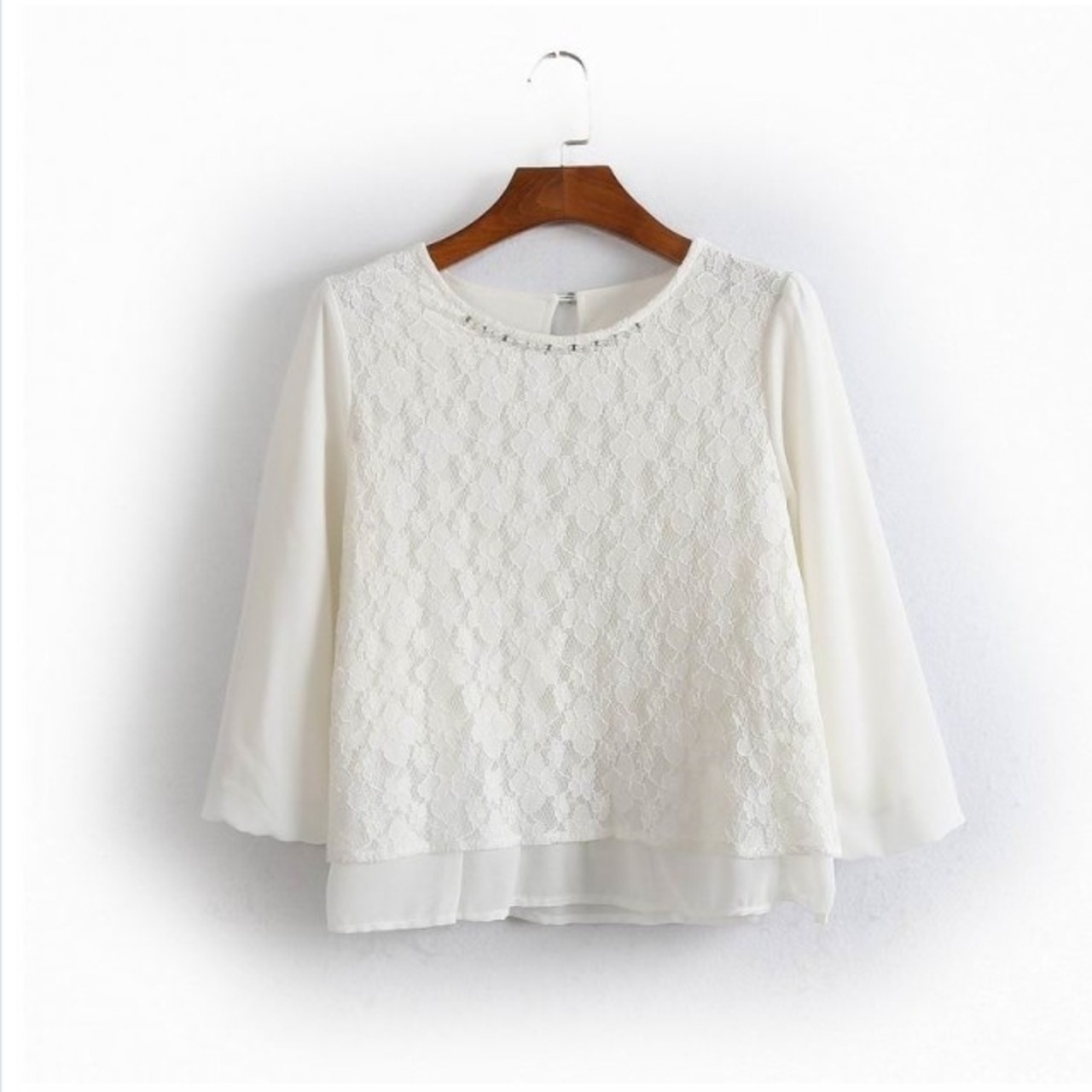 シアー トップス ビーミングライフストア(レディース) B:MING by BEAMS レース × シフォン ブラウス …
