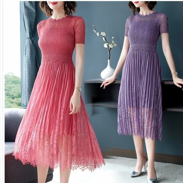プリーツスカート ロング 花柄 パーティードレス ワンピース お呼ばれ レース 結婚式 二次会 プリーツ お呼ばれドレス ドレス 20代 30代