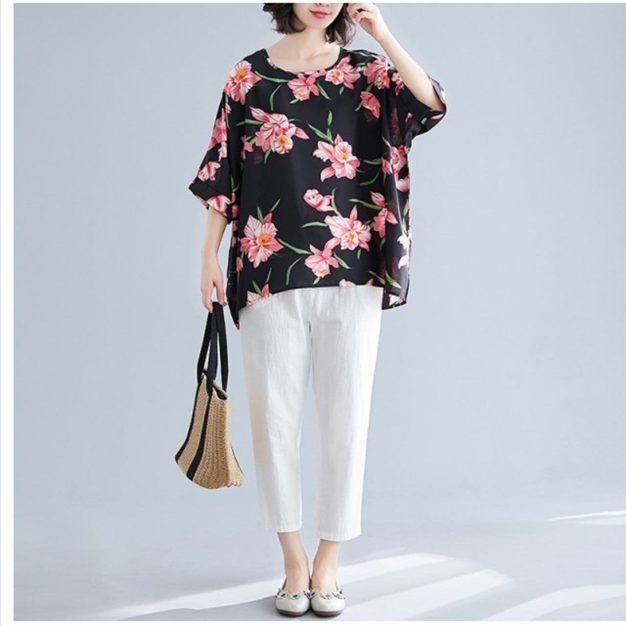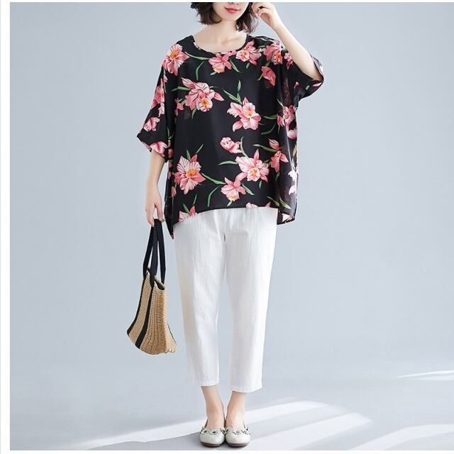 シアー トップス 新作 雰囲気のある大きめ花柄を着る 花柄シースルーワンピース&キャミソール 大きいサイズ レディース 半袖ワンピース