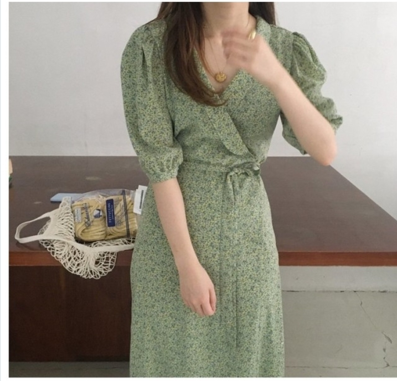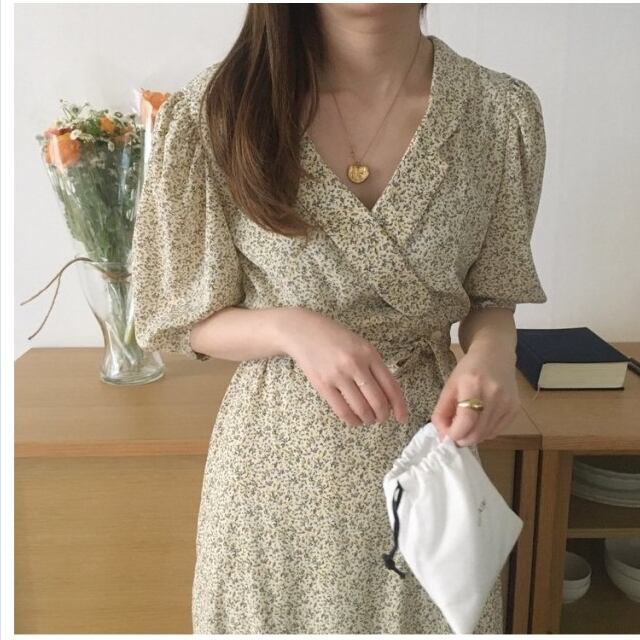 シアー トップス 小花柄 レディース トップス ワンピース ロング丈 マキシ丈 アシメトリー スリット 半袖 カットソー