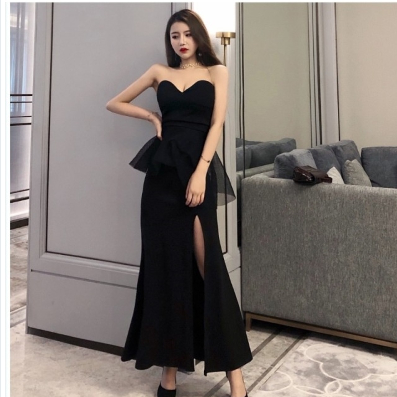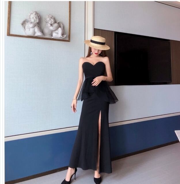 ゆるふわワンピース 大きいサイズ ロングドレス パーティードレス 結婚式 二次会 お呼ばれ マキシ丈 ワンピース ドレス ベアトップ スリ