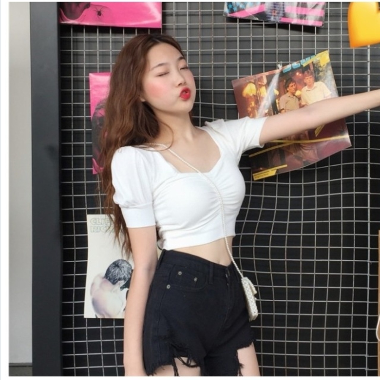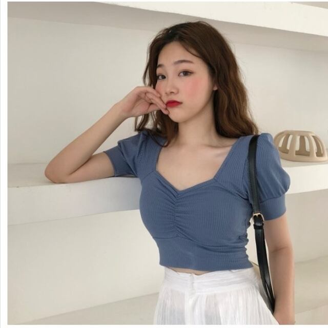 フリルブラウス 韓国 レトロ 花柄 ショート丈 ブラウス パフスリーブブラウス シャツ バルーンスリーブ ボリューム袖 袖フリル 半袖 トッ