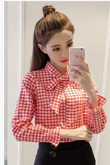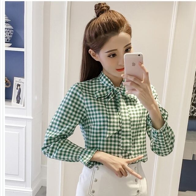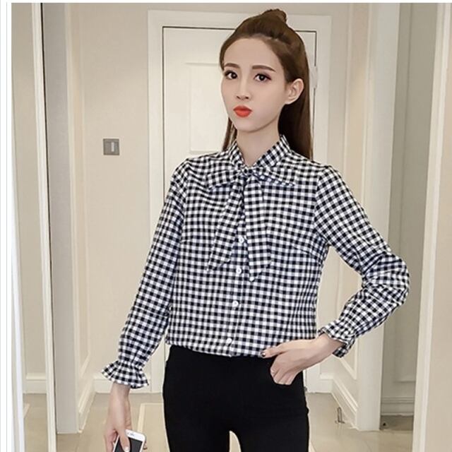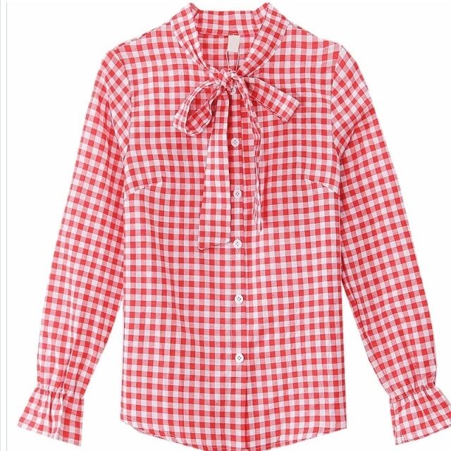 ゆめかわいい トップス レディース秋冬 レトロ ガーリー チェック柄 リボン 長袖 シャツ ブラウス プチプラ 着回し 着まわし かわいい お