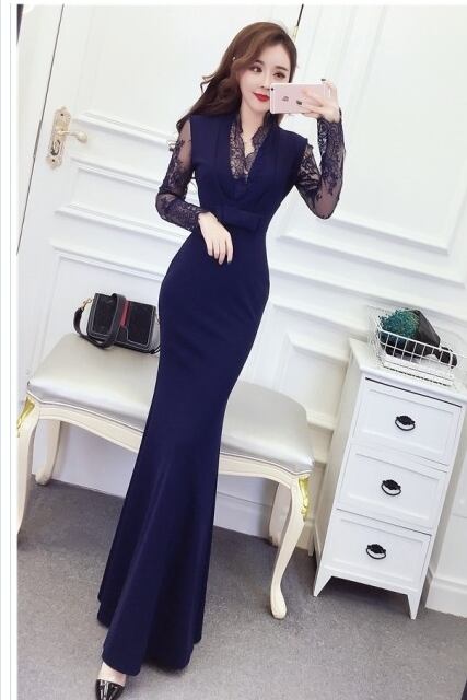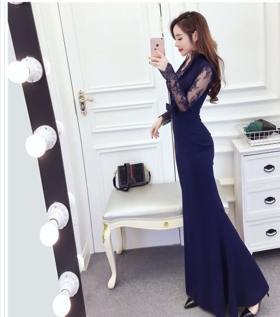 ゆるふわワンピース ロングドレス マーメイドライン パーティードレス 結婚式 マキシ丈 ワンピース ドレス 長袖 レース セクシー ヒップ
