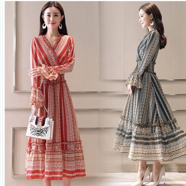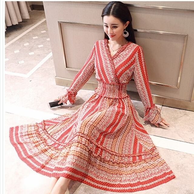 ゆるふわワンピース ワンピース レディース 総柄ワンピース チェック柄ワンピース プリーツ スタンドカラー ハイウエスト モダン ロング