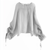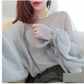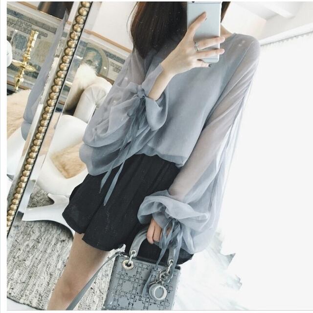 フェミニン ブラウス ブラウス キャミソール シースルー 長袖 パフスリーブ 袖ボリューム リボン トップス