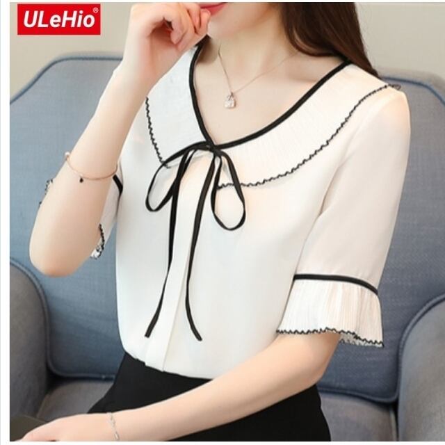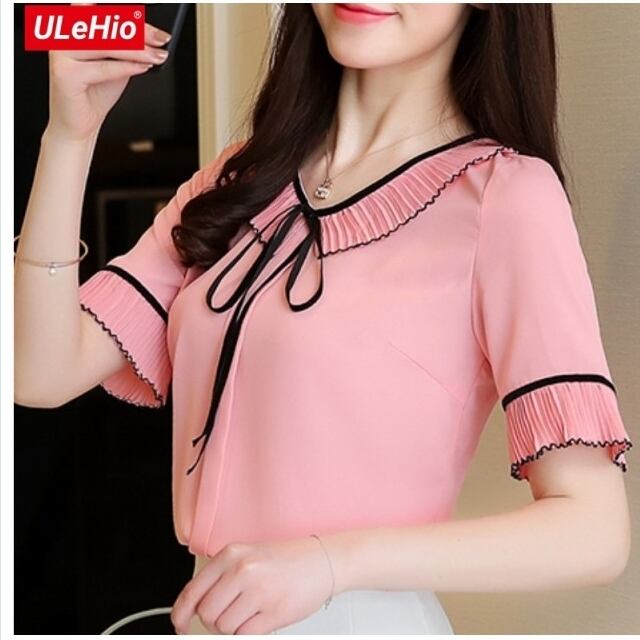 フェミニン ブラウス フレアスリーブ 赤色 半袖 シフォンブラウス 透け感 Vネック シャツ 婦人服 赤 女性らしい 夏物