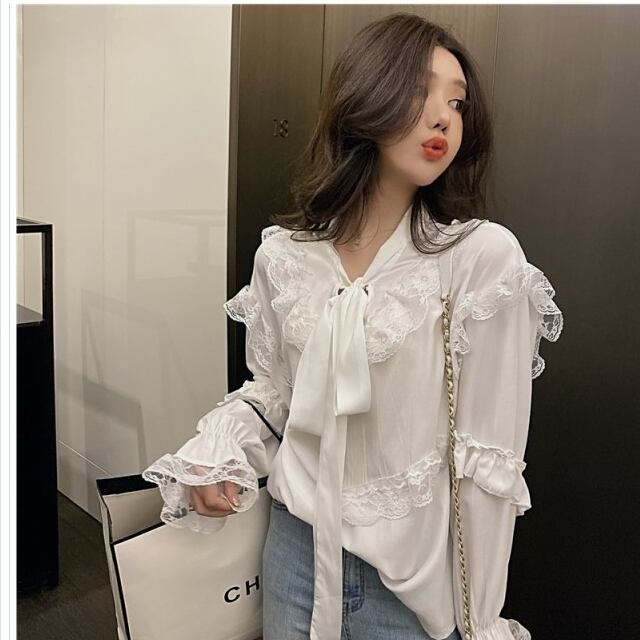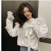 ロリ ワンピース シフォンブラウス シフォンシャツ シフォン ブラウス シャツ ワンピース リボン 刺繍 フリル アプリコット ホワイト ベ