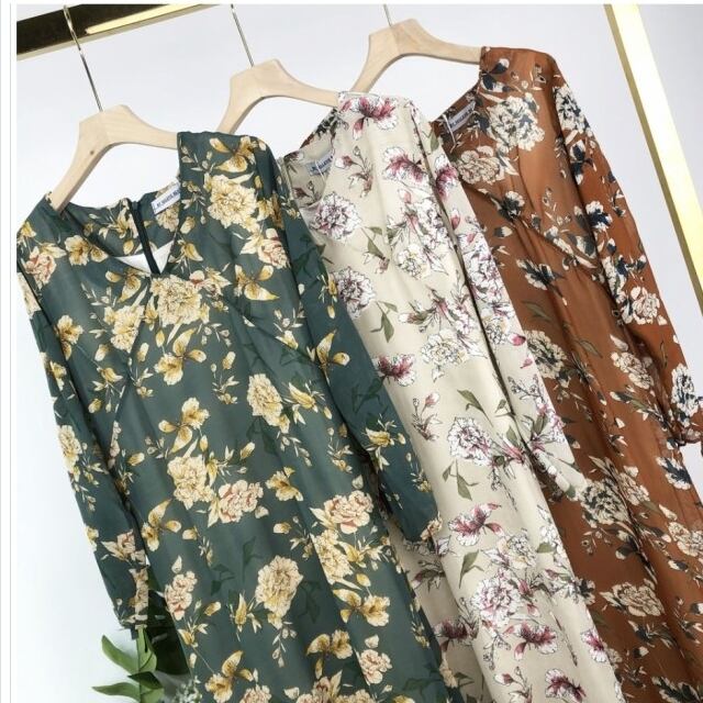 ロリ ワンピース レディース ワンピース ミディアム 春夏 マーメイド チャイナ風 花柄 プリント フラワー 半袖 グリーン レトロ エレガン