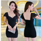 フェミニン ワンピース ワンピース レディース オフショルダーワンピース ハイウエストワンピース ミニ ショート 小さいサイズ 無地 色違