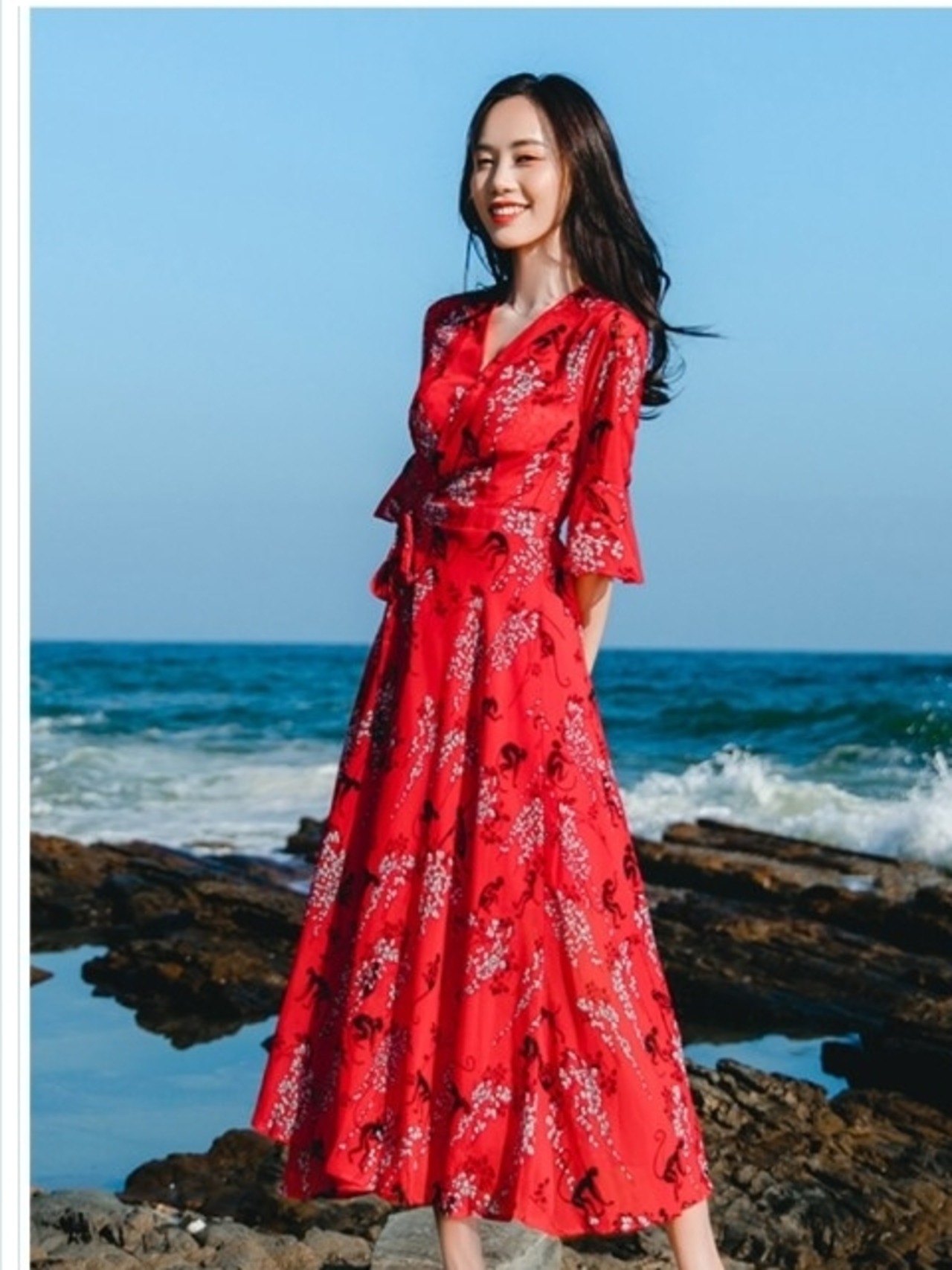 フェミニン ワンピース ふわりと風をまとう爽やかなリゾートワンピ フェミニン マキシ丈 カシュクール 花柄 Aライン 大きいサイズ レディ