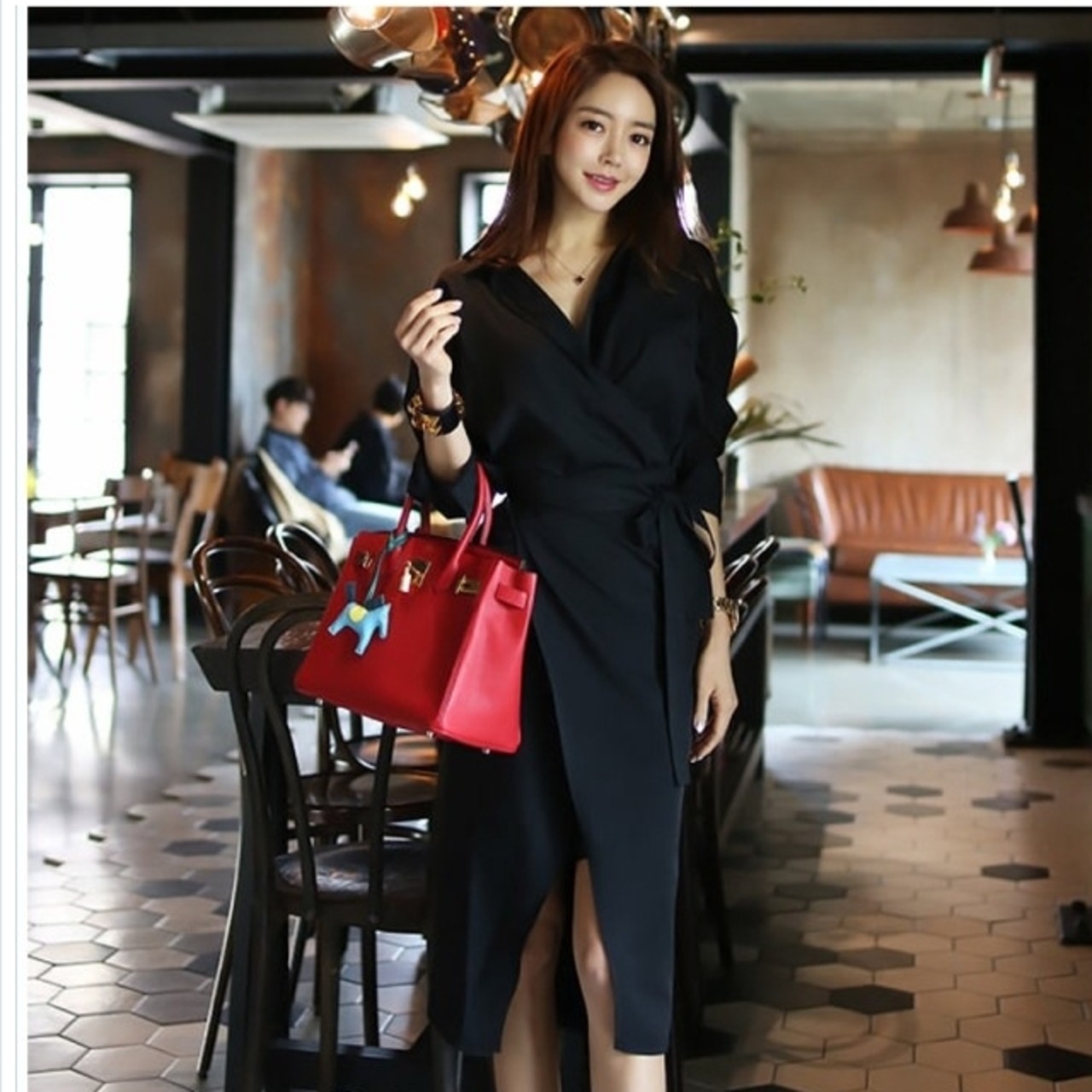 フェミニン ワンピース ワンピース シャツワンピース カシュクール 膝丈ワンピース ロングワンピース ひざ下丈 ミディ丈 スリット 無地