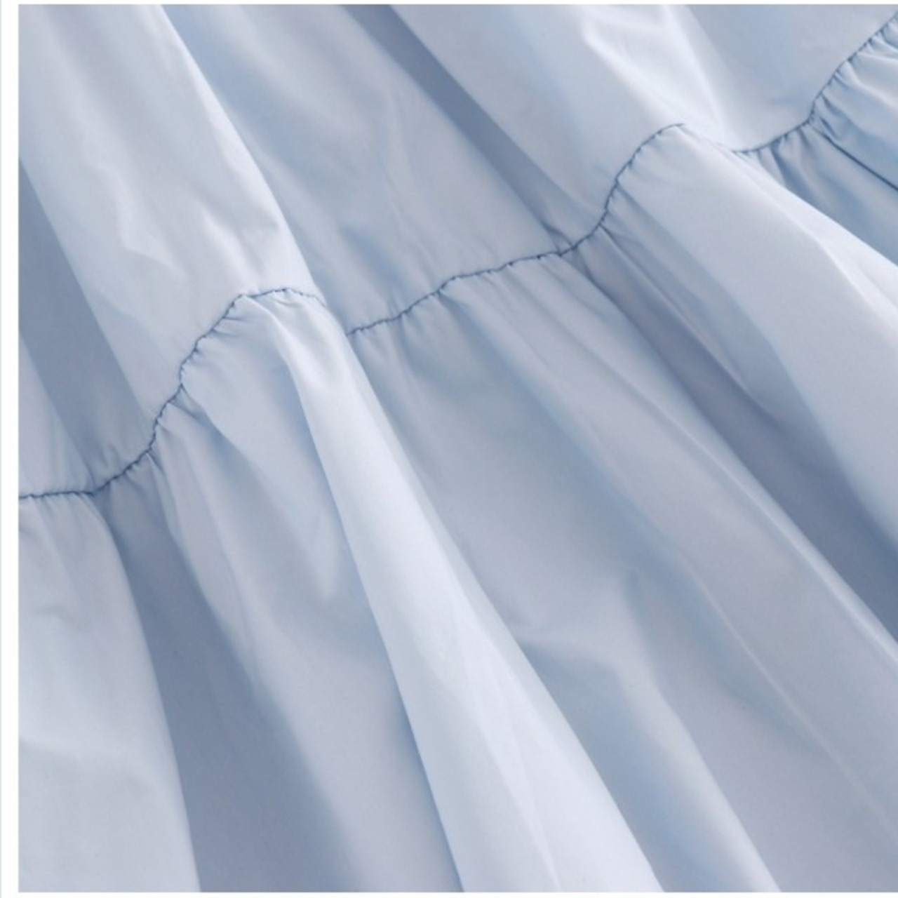 フレアマキシワンピース 春 夏 韓国 オルチャン ワンピース 夏 ガーリー 爽やか ワンピース 個性 フリル 青 ブルー レース やみかわ スカ
