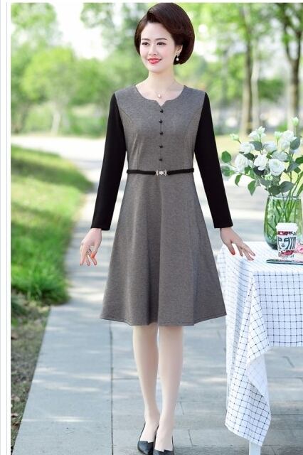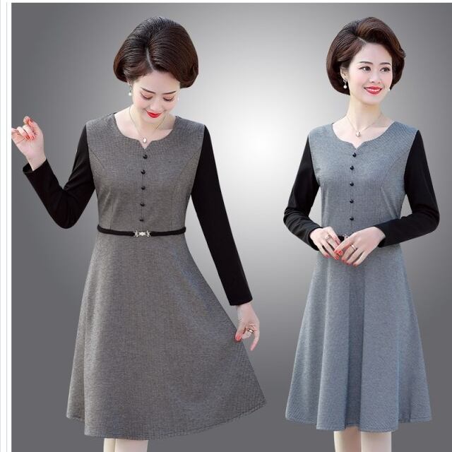 フェミニン ワンピース ワンピース 千鳥柄ワンピース シャツワンピース フレアワンピース Aラインワンピース Aライン 長袖 膝丈 上品 大