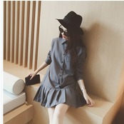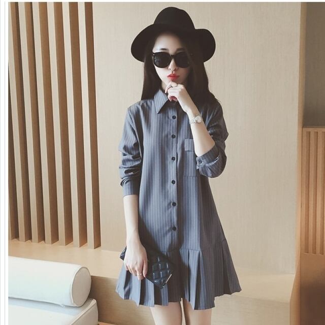 フェミニン ワンピース モード系 ワンピース ストライプ シャツワンピース アシンメトリー フリルスカート 袖コン 切替 フリル 大人かわ