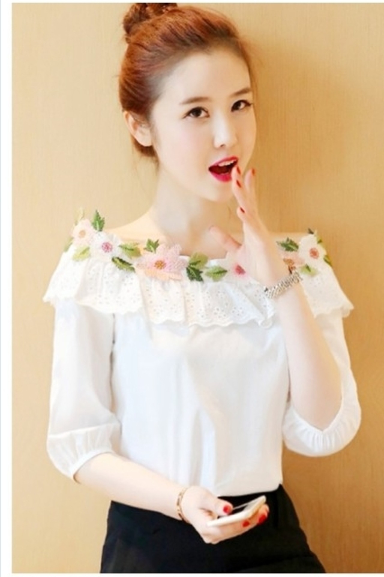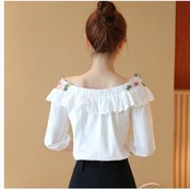 フェミニン ブラウス レーストップス ブラウス フリル ベルスリーブ 肩出し ガーリー 体型カバー 大きいサイズ レディース トップス 夏