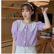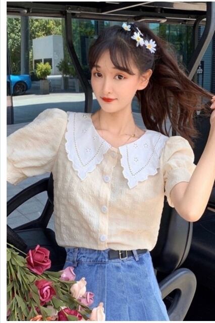 フェミニン ブラウス シャツブラウス パンチングステッチ スカラップ セーラーカラー フリルスリーブ ガーリー フェミニン お出かけ デー