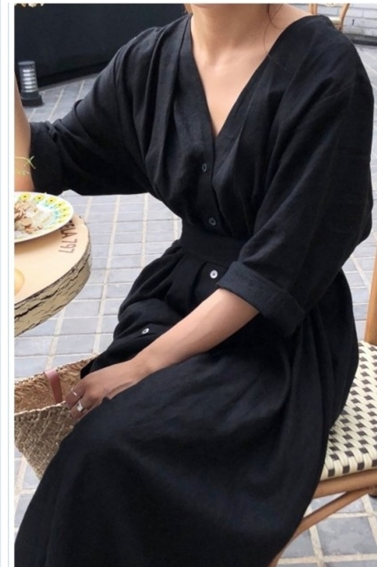 フェミニン ワンピース ワンピース レディース リネン風 ウエストベルト ワンピミモレ丈