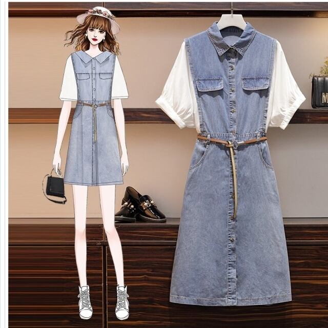 レディース 大きいサイズ 服 大きいサイズ レディース フェイク デニム スカート ワンピース 夏 ドレス 5L 4L 3L T