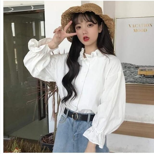 フェミニン ブラウス レトロクラシカル スタンドカラー ブラウス 長袖 ボウタイリボン ランタンスリーブ