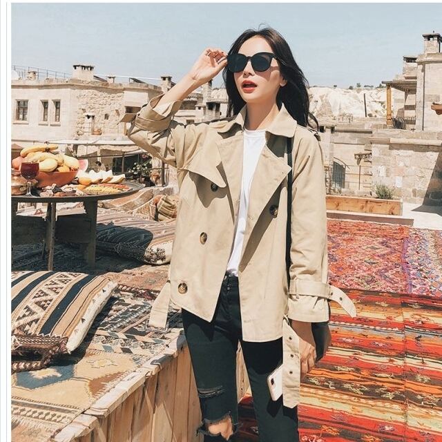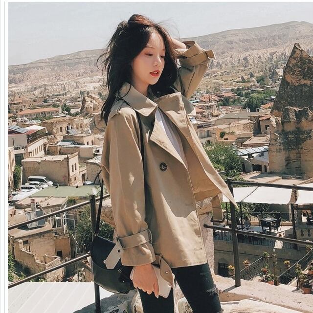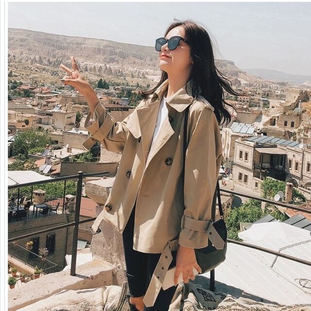 レディース 大きいサイズ 服 トレンチコート ショート丈 レディース ショート 大きいサイズ アウター トレンチ 春新作 春色 春服 韓国 春