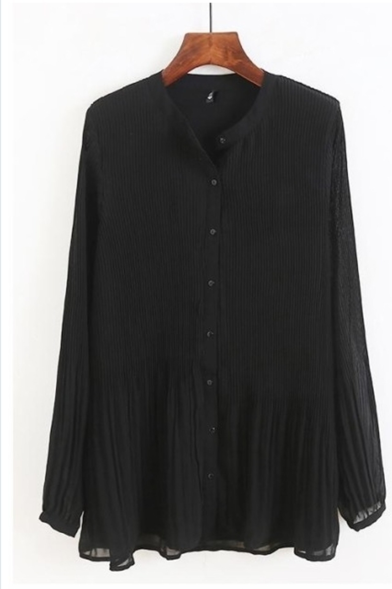 フェミニン ブラウス 大きいサイズ レディース 消しプリーツ ブラウス 透け素材 オフホワイト 黒 4L 5L ニッセン