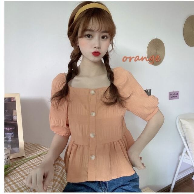 フェミニン ブラウス スクエアネック ブラウス ペプラム シャツ 大人可愛い フェミニン きれいめ 春夏コーデ