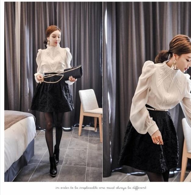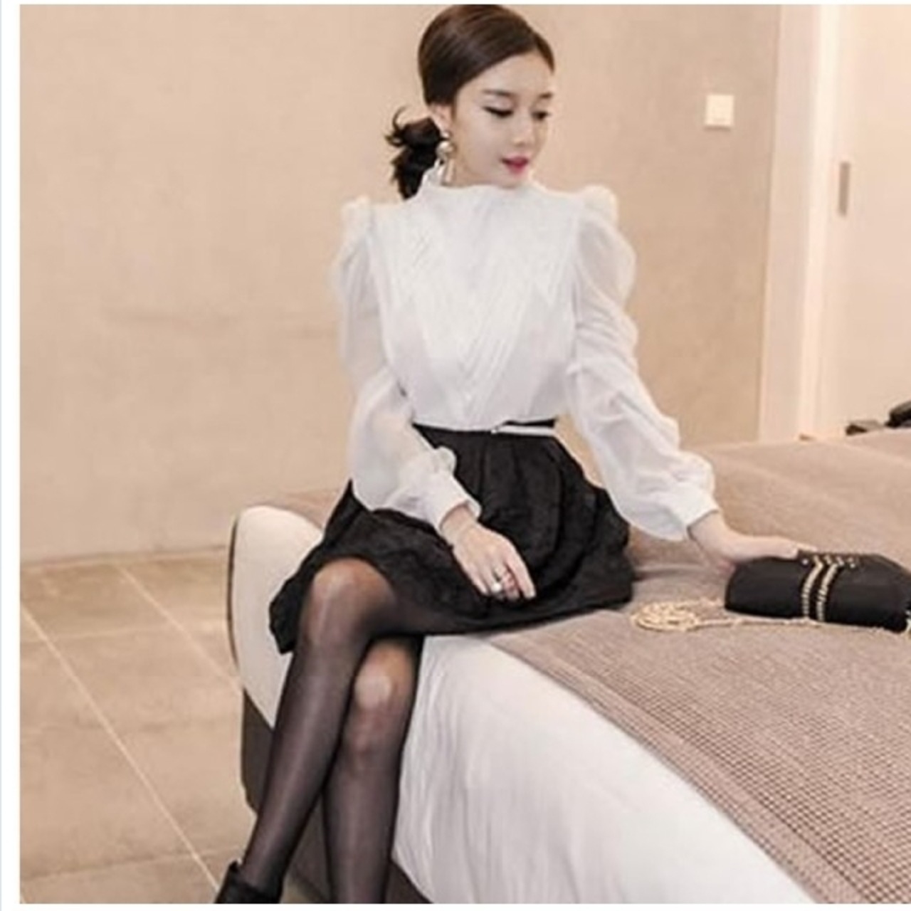 フェミニン ブラウス レディース トップス シャツ ブラウス 白 黒 長袖 ビクトリアン 刺繍 パフスリーブ 大きいサイズ 春夏