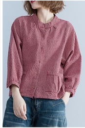 フェミニン ブラウス ブラウス 長袖 ノーカラー ギンガムチェック フェミニン 前開き 羽織 カジュアル 可愛い 春夏