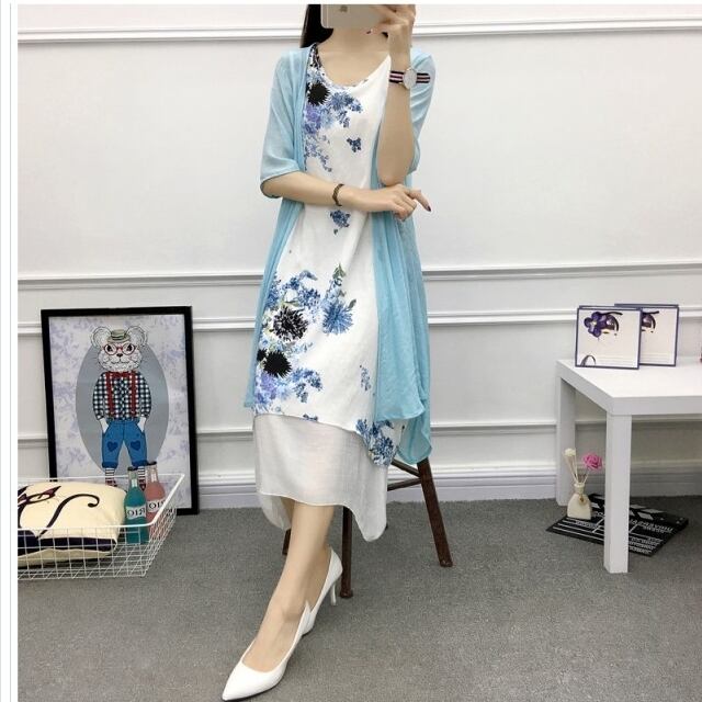 レディース 大きいサイズ 服 大きいサイズ レディース 花柄ワンピース ロングカーディガン アンサンブル セット 3L 4L 5L 6L ネコポス可