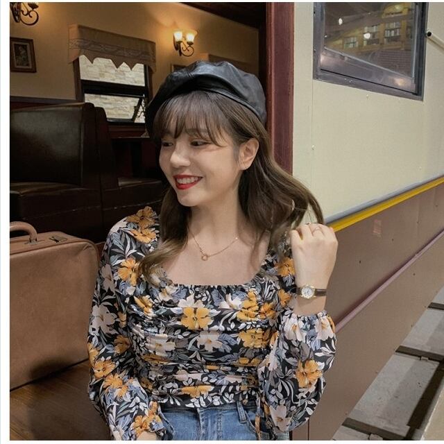 フェミニン ブラウス ブラウス レディース おしゃれ オフショルダー 長袖 花柄 スクエアネック パフスリーブ ショート丈 フェミニン 大人