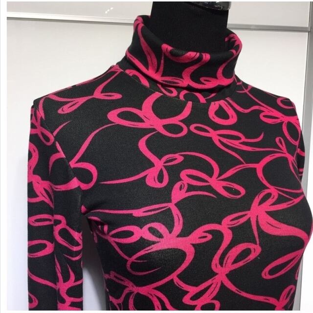 フェミニン ブラウス ブラウス レディース おしゃれ ハイネック 花柄 フリル 長袖 ベルスリーブ きれいめ レッド 赤 フェミニン 大人可愛