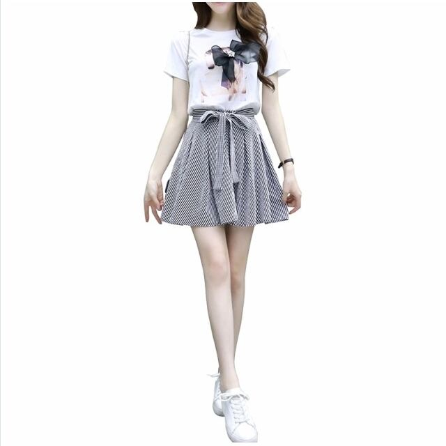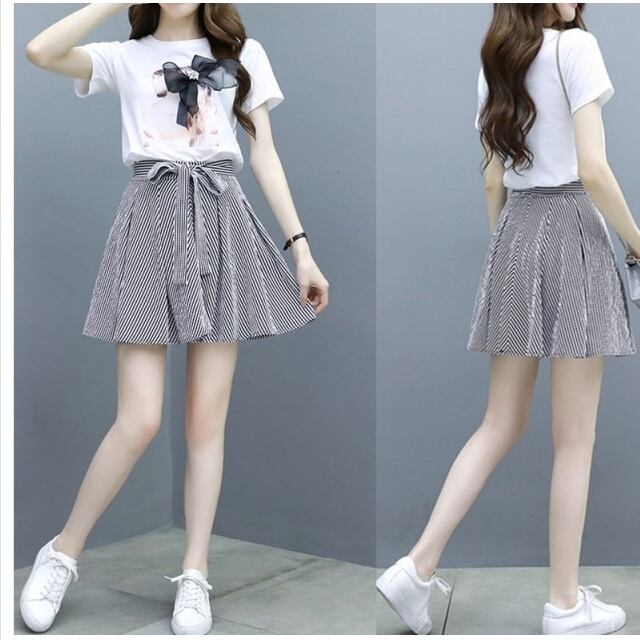 ボートネック ワンピース ワンピース セットアップ レディース 春夏2点セット Tシャツ スカート ハイウエスト ストライプ 着痩せ 通勤 オ