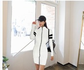 レディース 大きいサイズ 服 大きいサイズ レディース ミニワンピ スポーツミックス 袖ライン 黒 3L 4L 5L ブラック 春 ネコポス可