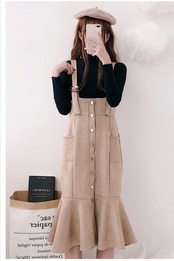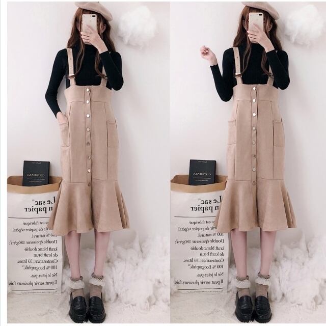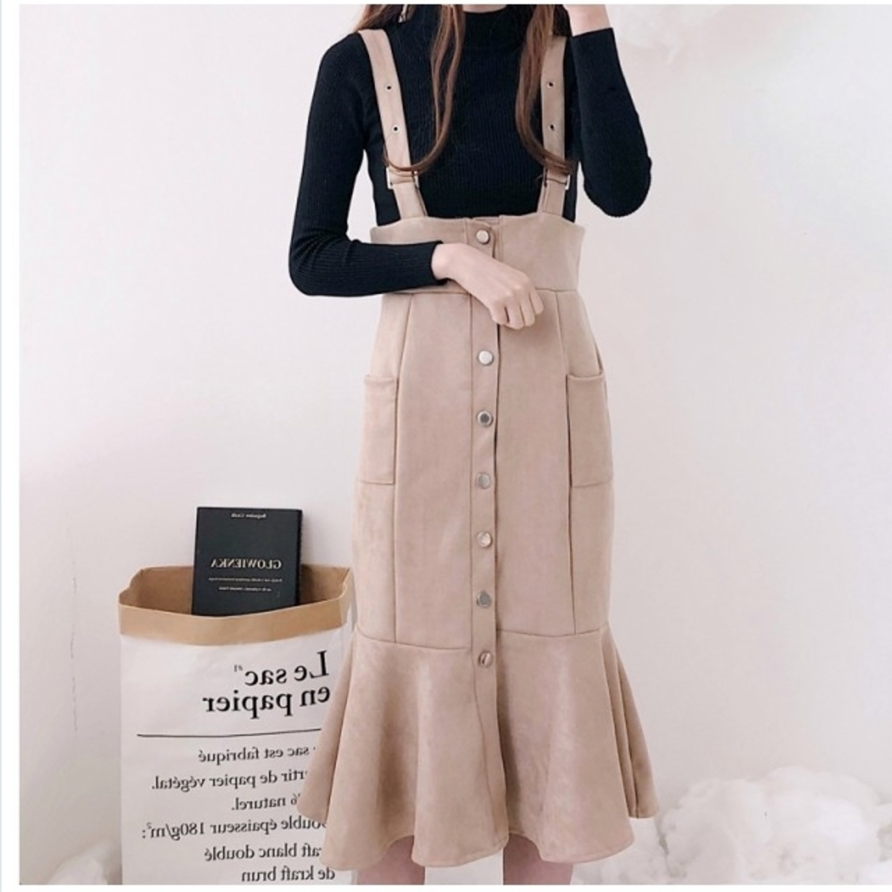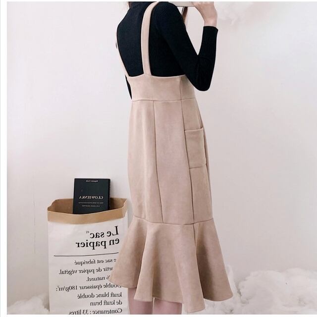 ワンピース マーメイド サロペットスカート レディース ワンピース マーメイドスカート スエード風 ジャンパースカート ミディアム丈 2点