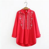 レディース 大きいサイズ 服 大きいサイズ レディース 刺繍シャツ ブラウス テールカット 無地 3L 4L 5L ネイビー レッド ホワイト ネコ