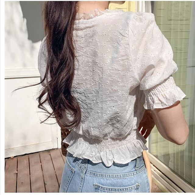 フェミニン ブラウス ブラウス レディース シャツ 半袖 ブラウス フリル レース 大人かわいい フェミニン