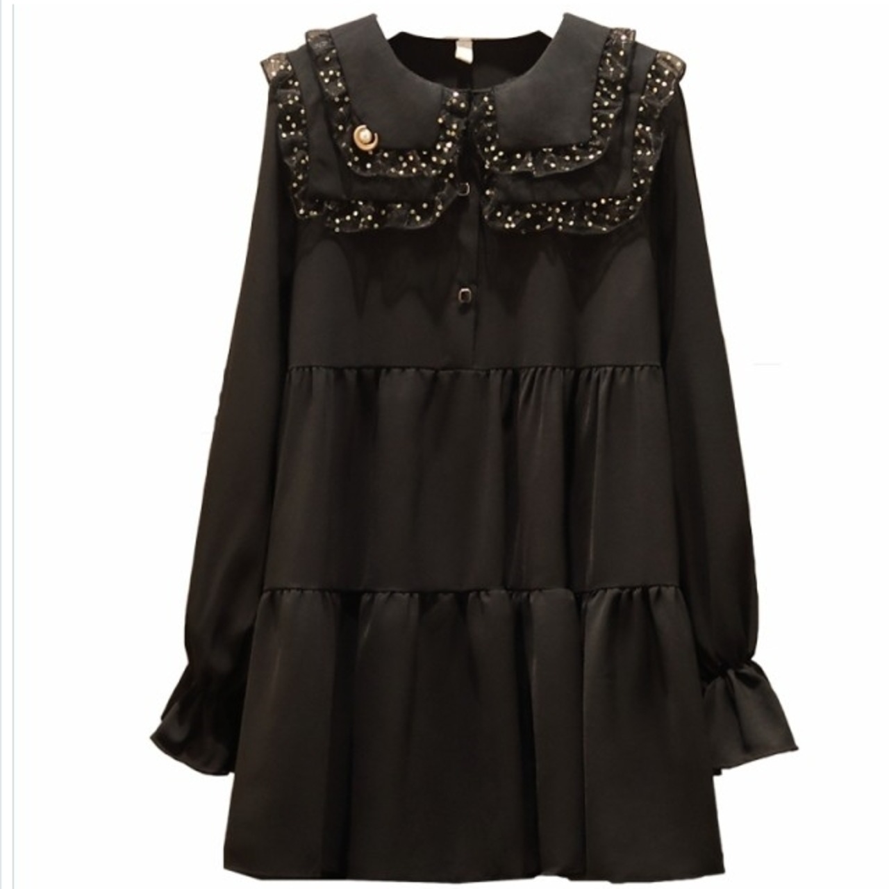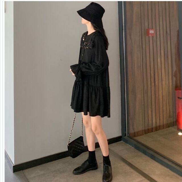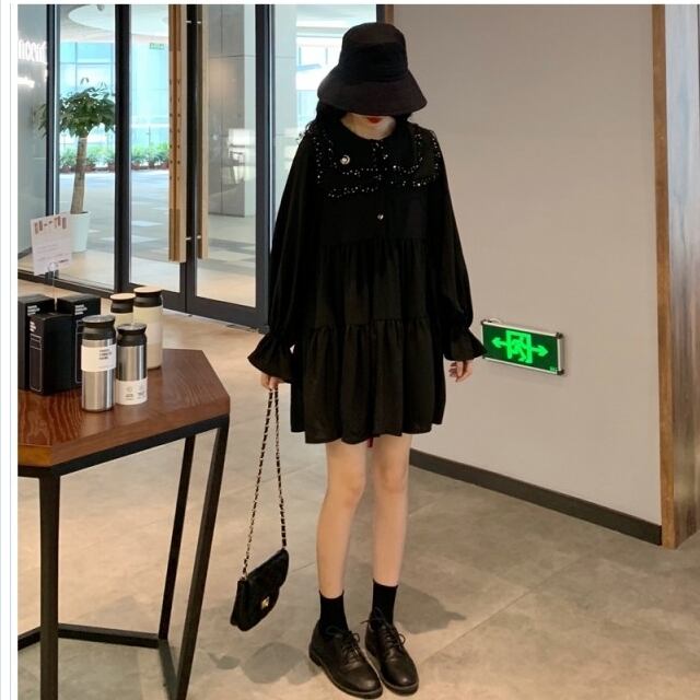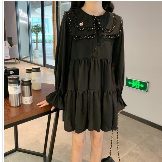 レディース 大きいサイズ 服 大きいサイズ レディース ワンピース でか襟デコ ティアード ワンピ ビッグサイズ オーバーサイズ 韓国ファ