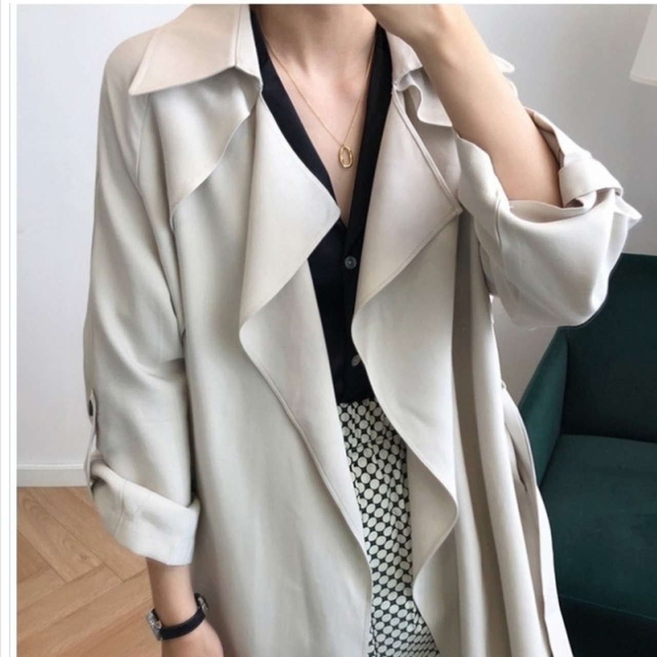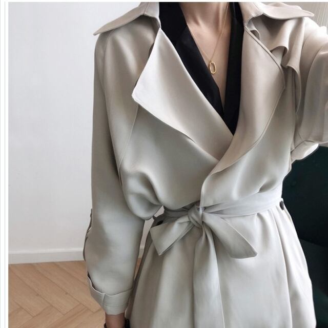 レディース 大きいサイズ 服 トレンチコート レディース スプリングコート とろみ感 ミディア丈 春コート ロングコート きれいめ おしゃ