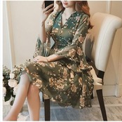ワンピース マーメイド レディース ワンピース ミディアム 春夏 マーメイド チャイナ風 花柄 プリント フラワー 半袖 グリーン レトロ エ